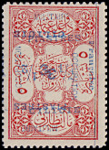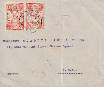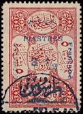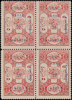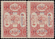 horizontal pair: left postage stamp 3½ Piaster with typesetting error "PIATSRES", right postage stamp 70 Para.