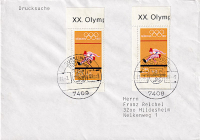 Inlandsbrief (1-20 g) vom 03.08.1972 (6. Periode) frankiert mit einer Briefmarke a 40 Pfennig (=40 Pfennig) |