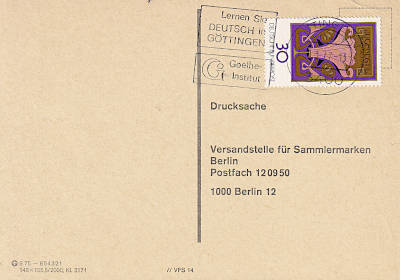 Inlandsdrucksache (1-20 g) vom 10.03.1977 (7. Periode) frankiert mit einer Briefmarke a 30 Pfennig (=30 Pfennig) |