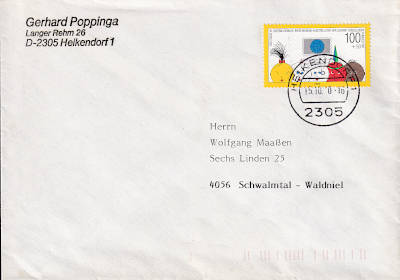 Inlandsbrief (1-20 g) vom 15.10.1990 (10. Periode) frankiert mit einer Briefmarke a 1 Mark (=1 Mark) |