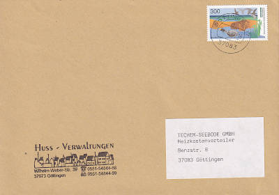 Inlandsbrief (1-20 g) vom 08.08.1997(11. Periode) frankiert mit einer Briefmarke a 1 Mark (=1 Mark)