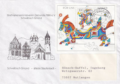 Inlandsbrief (1-20 g) vom 06.07.1996(11. Periode) frankiert mit einem Block a1 Mark (=1 Mark)