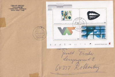 Inlandsbrief (51-500 g) vom 08.08.1997 (11. Periode) frankiert mit einem Block a 3 Mark (=3 Mark) |