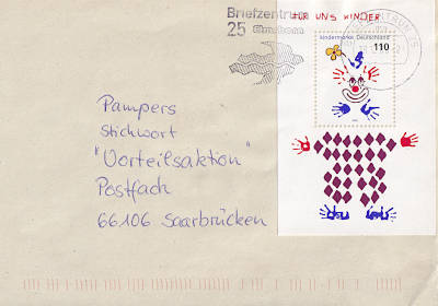 Inlandsbrief (1-20 g) vom 19.12.2000 (12. Periode) frankiert mit einem Block a 1,10 Mark (=1,10 Mark) |