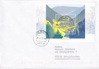 Inlandsbrief (1-20 g) vom 22.10.2012 (5. Periode) frankiert mit einem Block a 55 Cent (=55 Cent) |