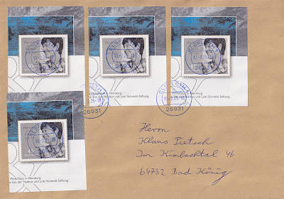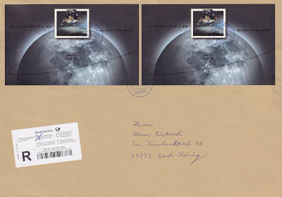 Auslandsbrief (51-500 g) vom 08.06.2021 (10. Periode) frankiert mit einem Block a 3,70 € (=3,70 €) |