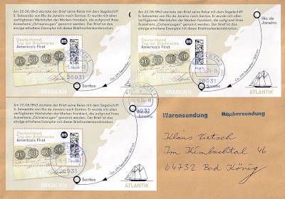 Inlandswarensendung (501-1 000 g) vom 06.06.2024 (11. Periode) frankiert mit 3 Blocks a 85 Cent (=2,55 €) |