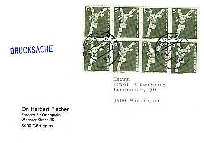 Inlandsdrucksache (1-20 g) vom 28.07.1979 (8. Periode) frankiert mit 8 Marken a 5 Pfennig (=40 Pfennig) |