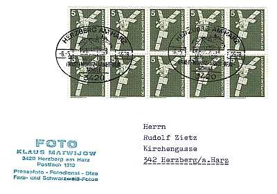 Inlandsbrief (1-20 g) vom 20.05.1978 (7. Periode) frankiert mit 10 Marken a 5 Pfennig (=50 Pfennig) |