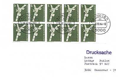 Inlandsdrucksache (1-20 g) vom 18.10.1984 (9. Periode) frankiert mit 10 Marken a 5 Pfennig (=50 Pfennig) |