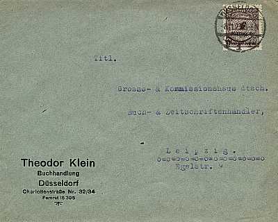 Inlandsbrief (1-20 g) vom 08.11.1923 (23. Periode) frankiert mit einer Marke a 1 Milliarde Mark (=1 Milliarde Mark) |