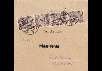 Inlandsdrucksache (1-25 g) vom 30.11.1923 (26. Periode) frankiert mit 4 Marken a 1 Milliarde Mark (=16 Milliarden Mark) |