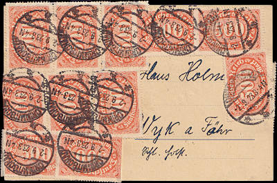 Foreign cover (1-20 g) from 17.08.1923 (15. Period) franked with 6 stamps a 500 Mark (=3 000 Mark) |