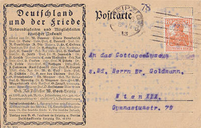 Auslandspostkarte vom 10.05.1918 frankiert mit einer Marke a 7½ Pfennig (=7½ Pfennig)