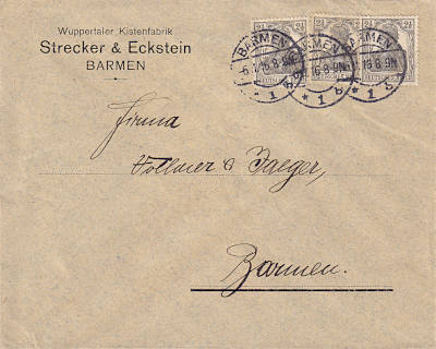 Ortsbrief (1-250 g) vom 06.11.1916 frankiert mit 3 Marken a 2½ Pfennig (=7½ Pfennig)