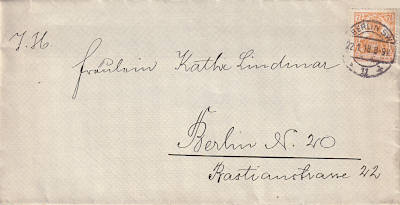 Ortsbrief (1-250 g) vom 22.01.1918 frankiert mit einer Marke a 7½ Pfennig (=7½ Pfennig)