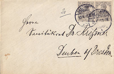 Inlandsdrucksache (1-50 g) vom 12.04.1919 frankiert mit 2 Marken a 2½ Pfennig(=5 Pfennig)