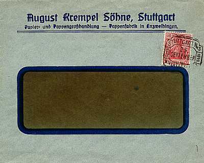 Ortsbrief (1-20 g) vom 25.09.1919 frankiert mit einer Marke a 10 Pfennig (=10 Pfennig)