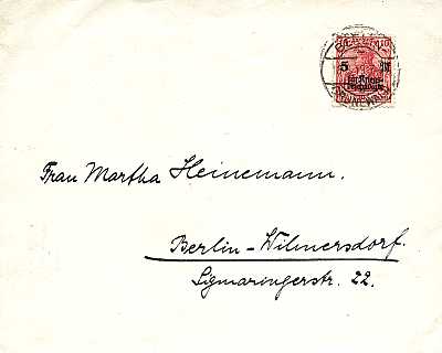 Ortsbrief (1-20 g) vom 18.08.1919 frankiert mit einer Marke a 10 Pfennig (=10 Pfennig)