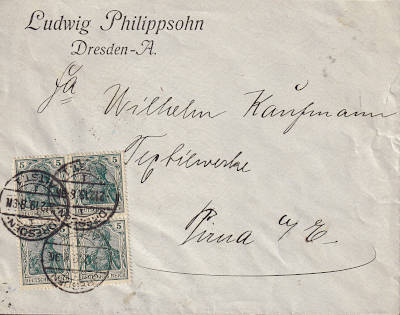 Inland cover (1-20 g) from 02.12.1919 franked with 4 stamps a 5 Pfennig (=20 Pfennig) |