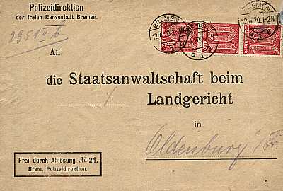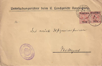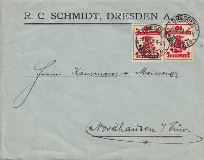 Inland cover (1-20 g) from 06.12.1919 franked with 2 stamps a 10 Pfennig (=20 Pfennig) |
