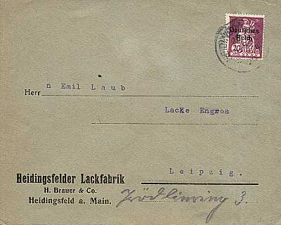 Inland cover (1-20 g) from 28.04.1920 franked with one stamp a 20 Pfennig (=20 Pfennig) |