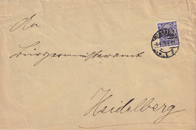 Inland cover (1-20 g) from 08.04.1920 franked with one stamp a 20 Pfennig (=20 Pfennig) |