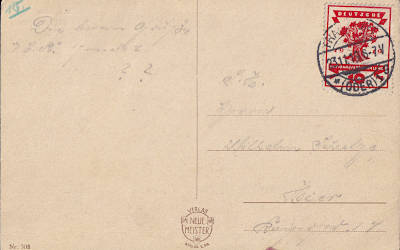 Local postcard from 23.11.1919 franked with one stamp a 10 Pfennig (=10 Pfennig)