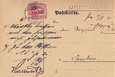 Inlandsdrucksache (1-50 g) vom 09.03.1921 frankiert mit einer Marke a 10 Pfennig (=10 Pfennig) |