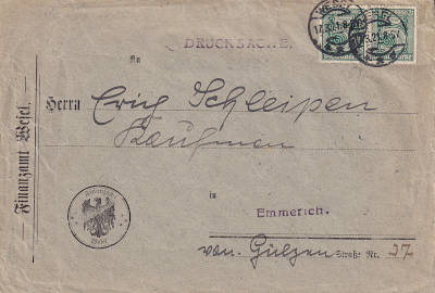 Inlandsdrucksache (1-50 g) vom 03.03.1921 frankiert mit 2 Marken a 5 Pfennig (=10 Pfennig) |