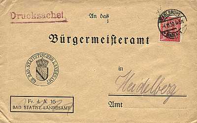 Inlandsdrucksache (1-50 g) vom 04.10.1920 frankiert mit einer Marke a 10 Pfennig (=10 Pfennig) |