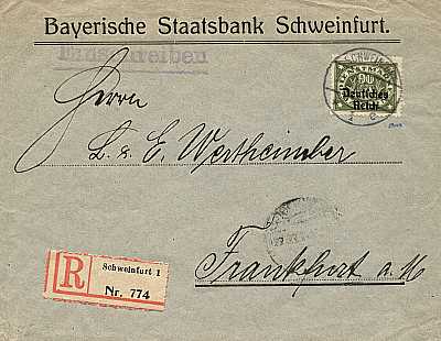 Inlandspaketkarte mit Einschreiben (1 000 g, > 75 km) vom 29.09.1920 frankiert mit einer Marke a 2½ Mark (=2,50 Mark, 2 Paket 0,50 Einschreiben) |