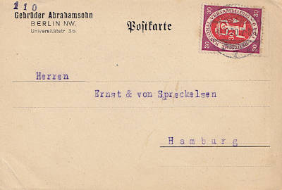 Inlandspostkarte vom 10.08.1920 frankiert mit einer Marke a 30 Pfennig (=30 Pfennig) |