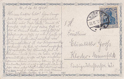 Inlandspostkarte vom 28.11.1920 frankiert mit einer Marke a 30 Pfennig (=30 Pfennig) |
