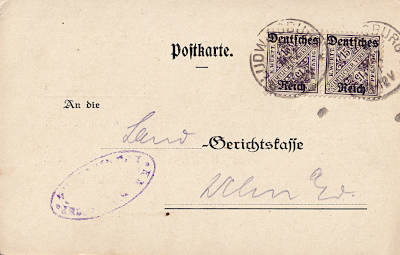 Inlandspostkarte vom 11.07.1920 frankiert mit 2 Marken a 15 Pfennig (=30 Pfennig) |