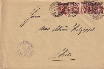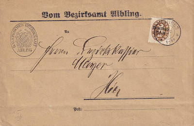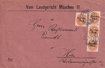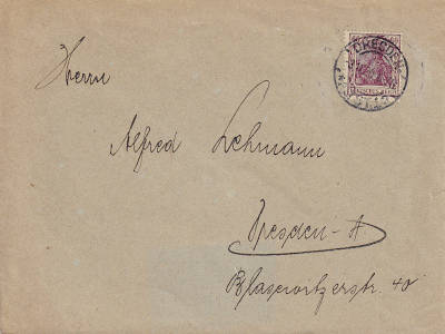 Ortsbrief (1-20 g) vom 25.05.1920 frankiert mit 4 Marken a 10 Pfennig (=40 Pfennig) |