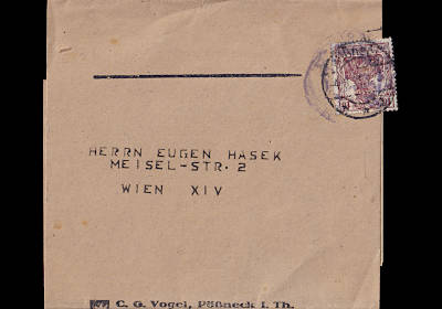 Auslandspaketkarte (9 000 g, > 75 km) vom 09.08.1921 frankiert mit 2 Marken a 4 Mark (=8 Mark) |
