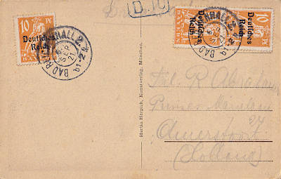Auslandspostkarte bis 5 Worte vom 05.09.1921 frankiert mit 3 Marken a 10 Pfennig (=30 Pfennig)