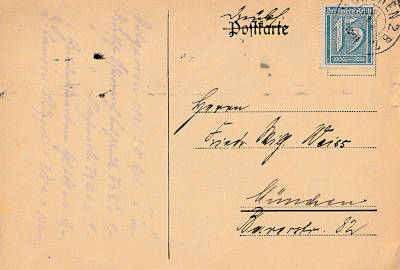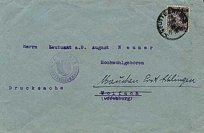 Inlandsdrucksache (1-50 g) vom 19.08.1921 frankiert mit einer Marke a 15 Pfennig (=15 Pfennig) |