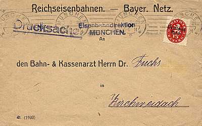 Inlandsdrucksache (1-50 g) vom 21.10.1921 frankiert mit einer Marke a 15 Pfennig (=15 Pfennig) |