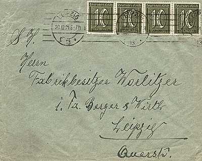 Ortsbrief (1-20 g) vom 13.09.1921 frankiert mit einer Marke a 40 Pfennig (=40 Pfennig) |