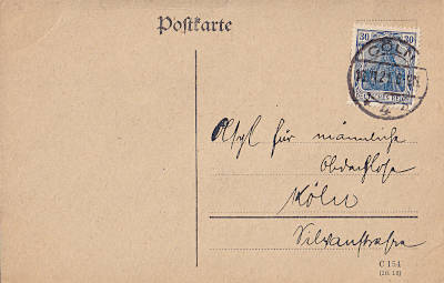 Ortspostkarte vom 10.11.1921 frankiert mit einer Marke a 30 Pfennig (=30 Pfennig)