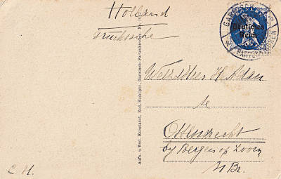 Auslandspostkarte bis 5 Worte vom 13.06.1922 frankiert mit einer Marke a 80 Pfennig (=80 Pfennig)