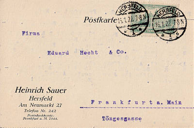 Inlandspostkarte vom 08.05.1922 frankiert mit 2 Marken (=1,25 Mark) |