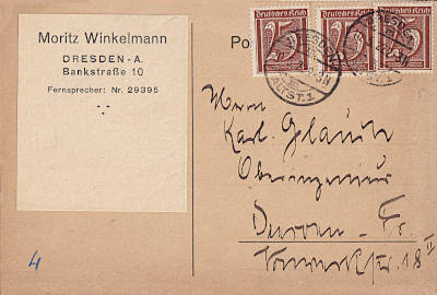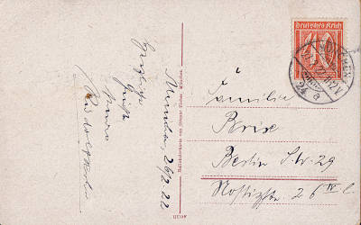 Inlandspostkarte bis 5 Worte vom 27.02.1922 frankiert mit einer Marke a 40 Pfennig(=40 Pfennig)