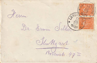 Inlandsbrief (1-20 g) vom 17.07.1922 frankiert mit 10 Marken a 30 Pfennig (=3 Mark) |