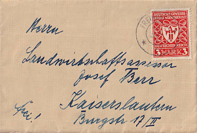 Inlandsbrief (1-20 g) vom 21.07.1922 frankiert mit einer Marke a 3 Mark (=3 Mark) |