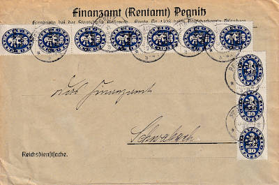 Inlandsbrief (1-20 g) vom 04.09.1922 frankiert mit 10 Marken a 30 Pfennig (=3 Mark) |