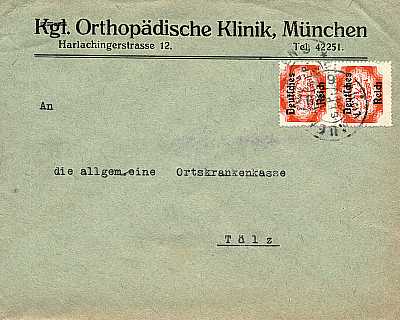 Inlandsbrief (1-20 g) vom 25.08.1922 frankiert mit 6 Marken a 50 Pfennig (=3 Mark) |