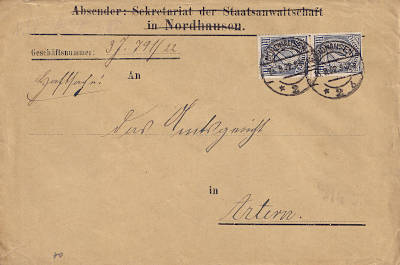 Inlandsbrief (1-20 g) vom 04.09.1922 frankiert mit 2 Marken a 1½ Mark (=3 Mark) |
